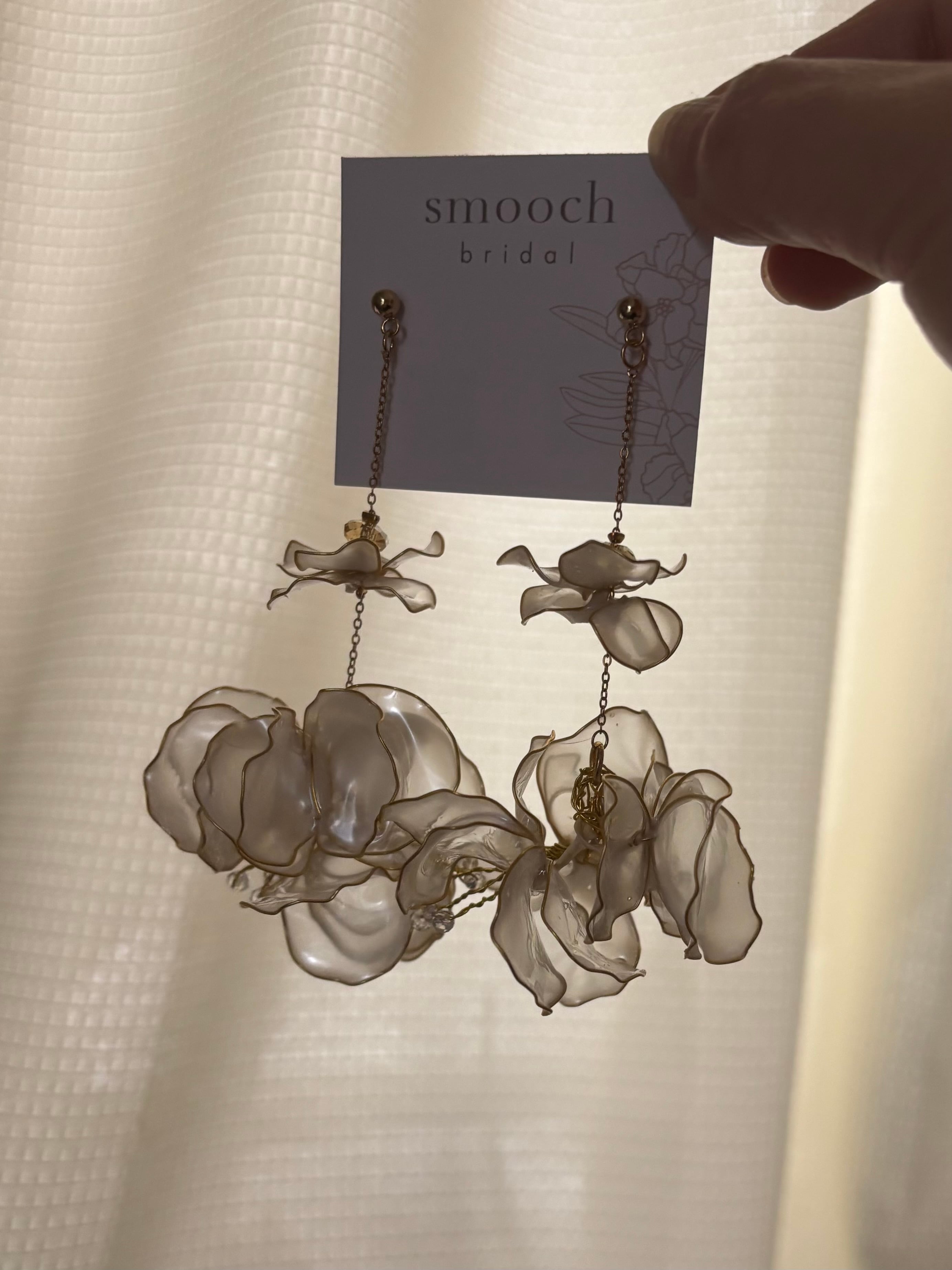 「揺れる花」は、特別な日をさらに引き立てる美しいピアスです。繊細なデザインと揺れる動きが魅力で、結婚式やパーティー、普段使いにもぴったり!お手持ちのコーディネートにも自然に馴染みます♡