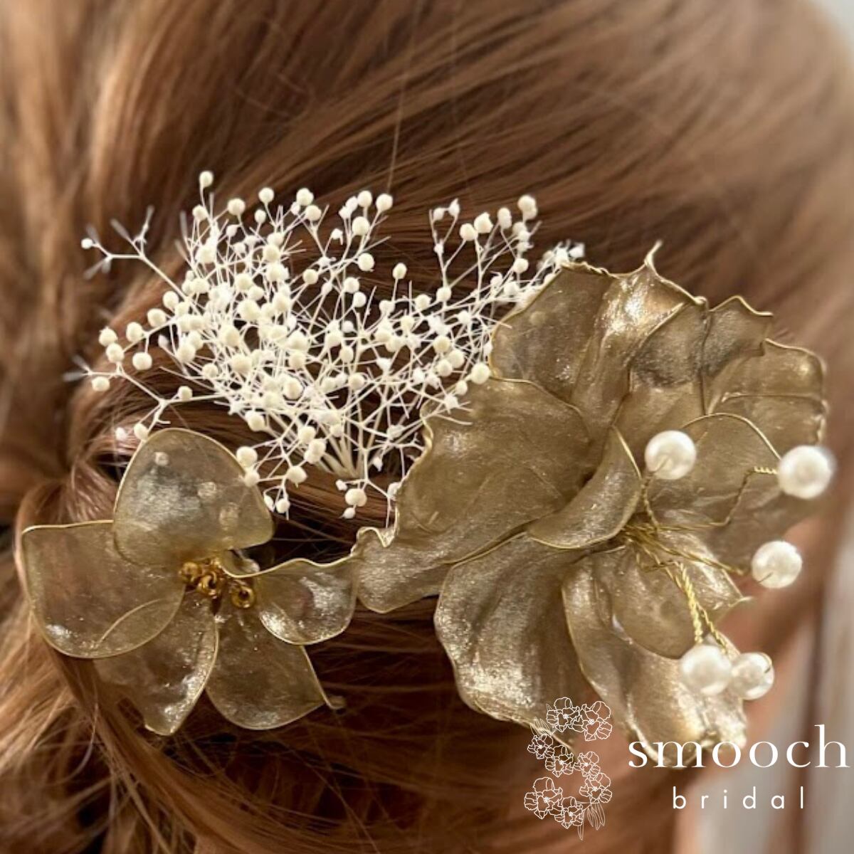 ウェディング ドレス カラードレス 白無垢 色打掛 振袖 和婚 成人式 卒業式 お呼ばれ パーティ ヘッドアクセサリー 花飾り ブライダル 髪飾り ヘッドパーツ 着物 七五三 枯れない 挙式 前撮り フォトウェディング ロケーションフォト パンパスグラス ニュアンスカラー 透明感 キラキラ